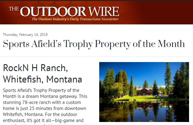 Sports Afield’s Trophy Property of the Month is on today’s (Feb 14, 2019) edition of Outdoor Wire (outdoorwire.com).